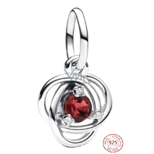 Charm Sterlingové stříbro 925 Červený temně kruh věčnosti leden, přívěsek na náramek symbol