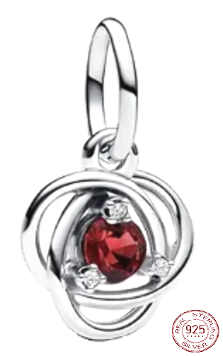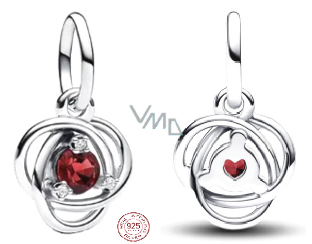 Charm Sterlingové stříbro 925 Červený temně kruh věčnosti leden, přívěsek na náramek symbol