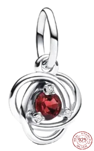 Charm Sterlingové stříbro 925 Kruh věčnosti Červený temně, leden, přívěsek na náramek symbol
