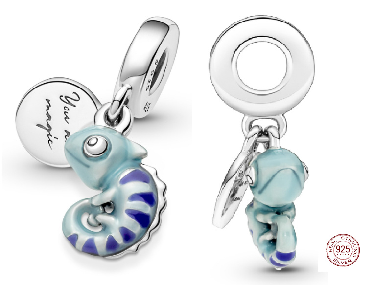 Charm Sterlingové stříbro 925 Chameleon, 2v1 mění barvy na teplo, přívěsek na náramek zvíře
