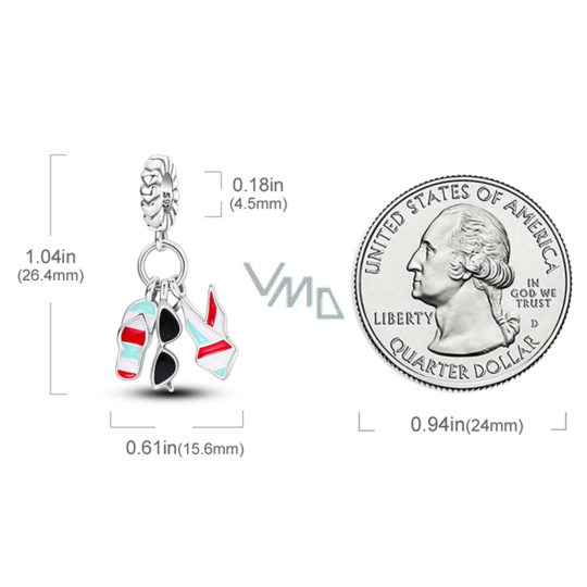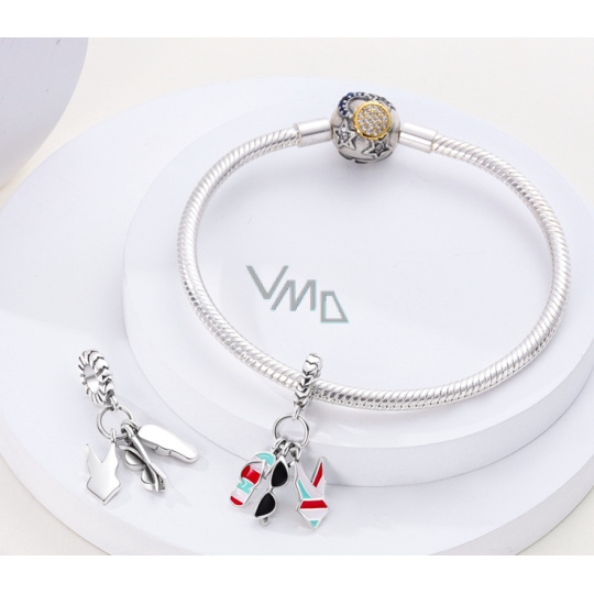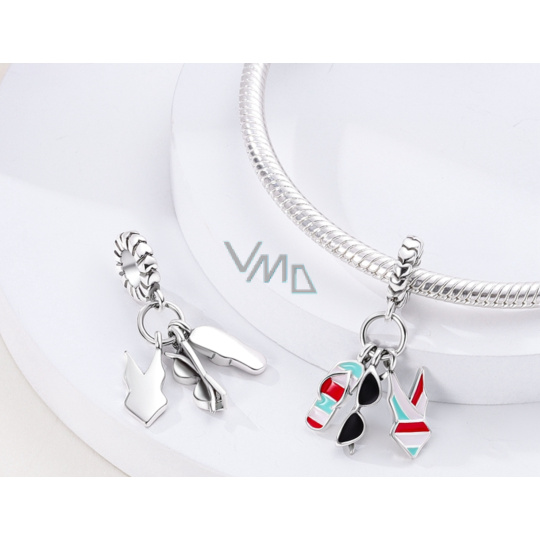 Charm Sterlingové stříbro 925 Chic style - Letní zábava, brýle, plavky, žabky, 3v1 přívěsek na náramek, zájmy