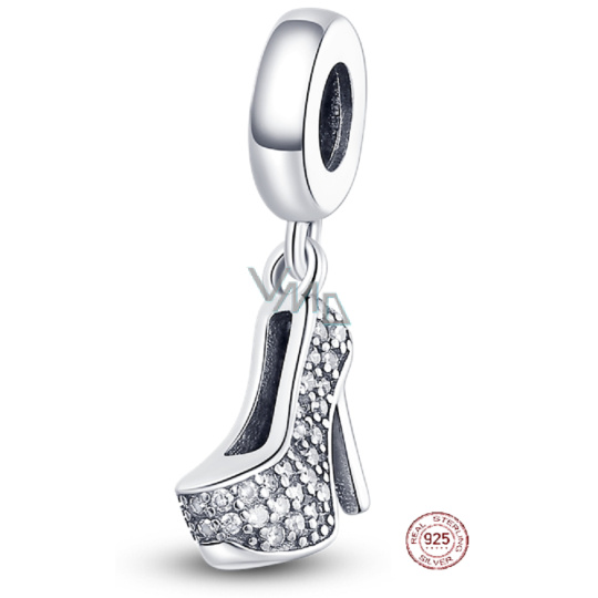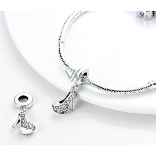 Charm Sterlingové stříbro 925 Chic style - třpytivý střevíček na jehlách, přívěsek na náramek, zájmy