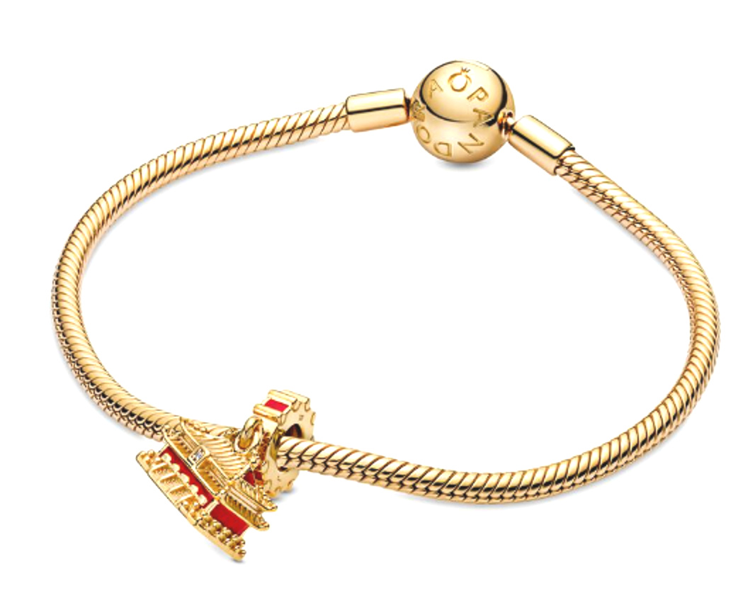 Přívěsek ze Zakázaného města v Pekingu oživuje zasněnou královskou atmosféru nádhery, vyřezávaných zábradlí a malovaných budov a hřejivého nefritu a kouře. Zakázané město jako ikonické ceremoniální a politické centrum Číny zaujímá v čínské historii velmi zvláštní postavení. Připomeňte si svou návštěvu Zakázaného města tímto ručně vyrobeným kouzlem. Je vyrobena z pozlacené slitiny mědi a stříbra a je vykládána čirými kamínky kubické zirkonie. Přívěsek Zakázané město je zdoben ručně malovanými červenými smaltovanými detaily a rytinou „BJ“ (Peking).