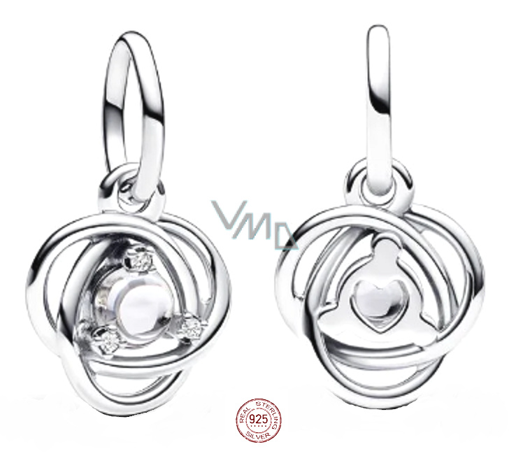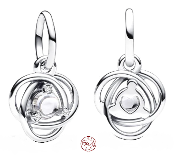 Charm Sterlingové stříbro 925 Čirý zirkon kruh věčnosti duben, přívěsek na náramek symbol