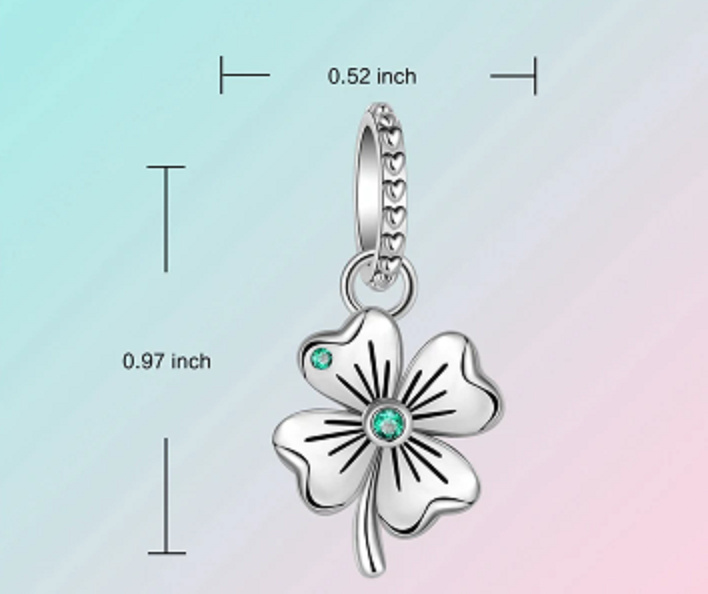 Stříbrný přívěsek ve tvaru krásně propracovaného čtyřlístku, jenž je symbolem štěstí. Přineste štěstí do svého náramku s tímto čtyřlístkovým přívěskem ze sterlingového stříbra. Přívěsek je osazen zeleným drobným Zirkonem a detailně zpracován stopkou ve tvaru srdce.