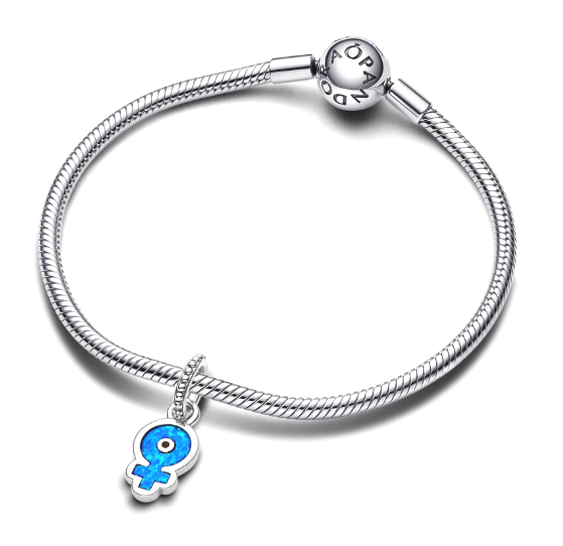 Podpořte dobrou věc s opalizujícím přívěskem pro ženy, vyrobeným ze sterlingového stříbra. Toto kouzlo s opalescentním motivem ženského pohlaví s modrým Opálem vytvořeným v laboratoři na jedné straně a složitým vzorem na druhé straně je inspirováno ženskou silou (powerful - silný, mocný).