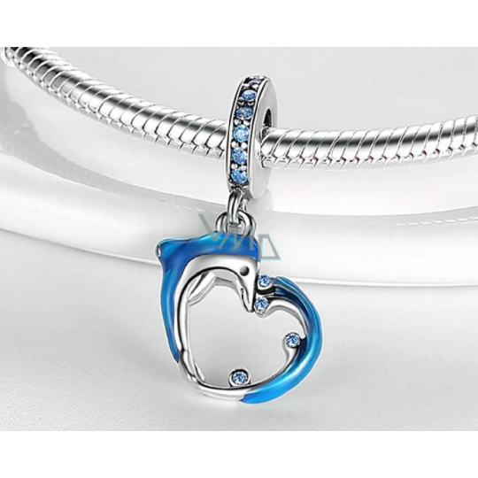 Charm Sterlingové stříbro 925 Delfín na vlně ve tvaru srdce, přívěsek na náramek moře