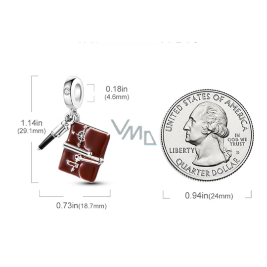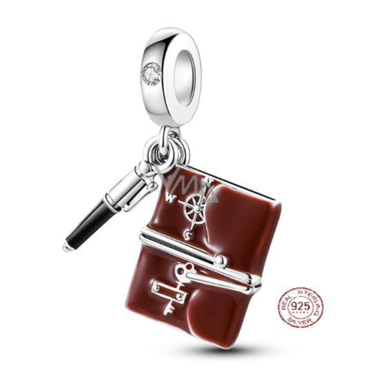 Charm Sterlingové stříbro 925 Diář a pero, 3v1 přívěsek na náramek zájmy