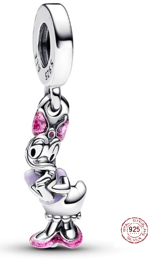Charm Sterlingové stříbro 925 Disney Daisy s růžovým smaltem, přívěsek na náramek film