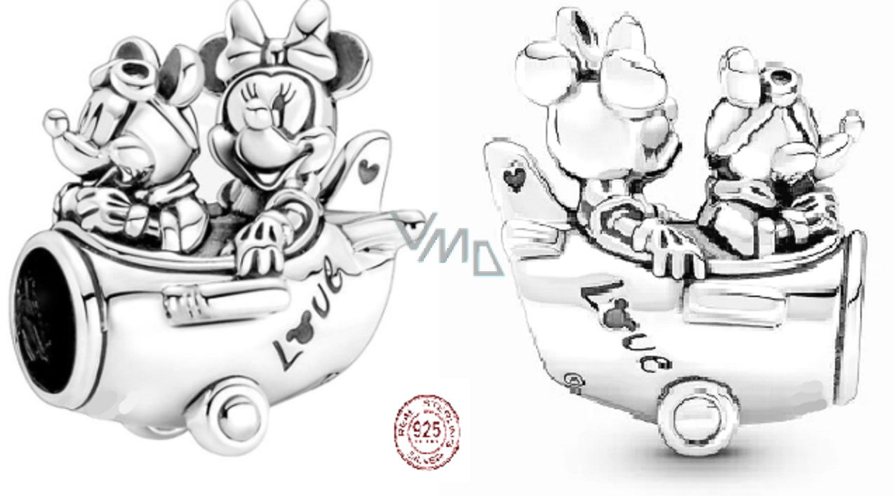 Charm Sterlingové stříbro 925 Disney dobrodružství s Mickey Mousem a Minnie. korálek na náramek cestování