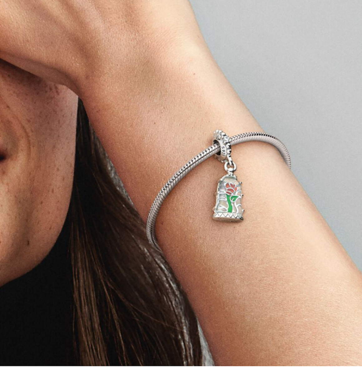 Charm Sterlingové stříbro 925 Disney Kráska a Zvíře Kouzelná růže, přívěsek na náramek, film