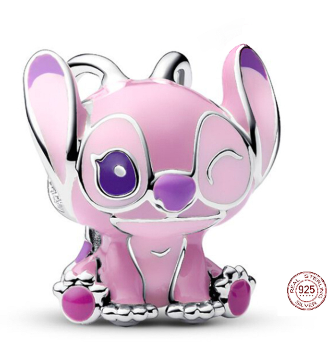 Objevte kouzlo světa s tímto nádherným stříbrným korálkem Angel, ikonickou postavičkou z filmu Lilo & Stitch. Tento romantický šperk Moments vyniká růžovým a fialovým smaltem, který dokonale vystihuje její něžný, ale odvážný charakter. S roztomilými detaily, jako jsou tykadla ve tvaru srdce a mrkající výraz, přináší Angel šarm, styl i jemnou drzost. Je ideálním doplňkem pro každého, kdo miluje příběhy, nebo si přeje dodat svému šperku romantický a hravý nádech.
