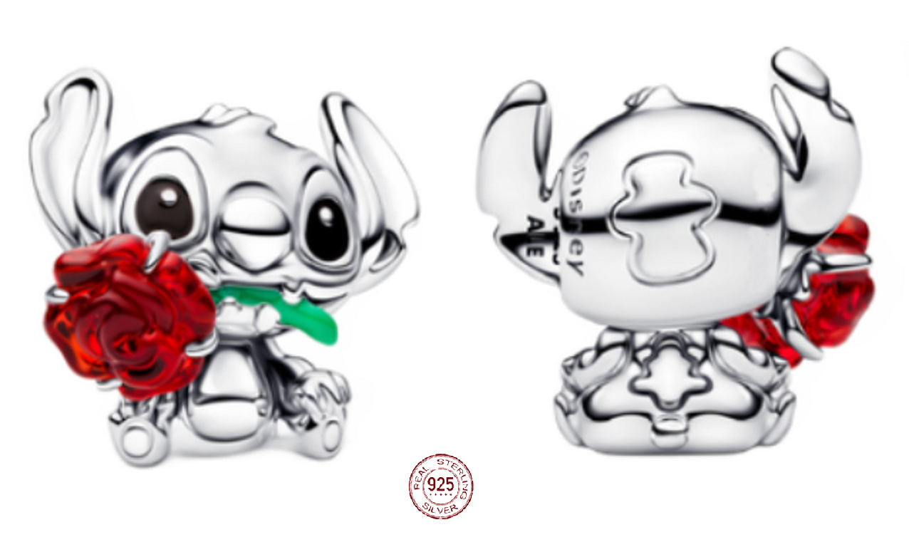 Roztomilý stříbrný přívěsek s motivem Stitch držícího červenou Růži spojuje hravost, lásku a opravdové emoce. Tento šperk symbolizuje darování srdce, upřímný cit a připomínku, že i ti nejdivočejší mají schopnost milovat. Červená růže představuje lásku, vášeň a něhu, zatímco Stitch dodává celému motivu lehkost, radost a poselství přijetí. Výsledkem je šperk, který rozesměje, dojme a zahřeje u srdce – ideální jako dárek z lásky.