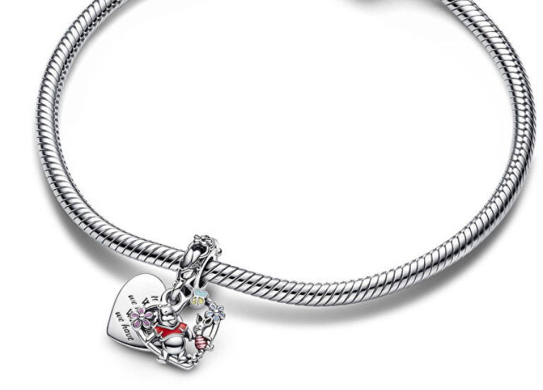 Charm Sterlingové stříbro 925 Disney Medvídek Pú a Prasátko - Není to o tom co máme, ale koho máme, 2v1 přívěsek srdce na náramek, film