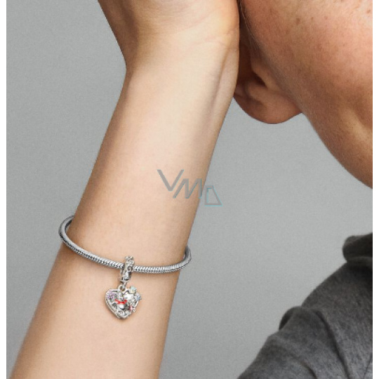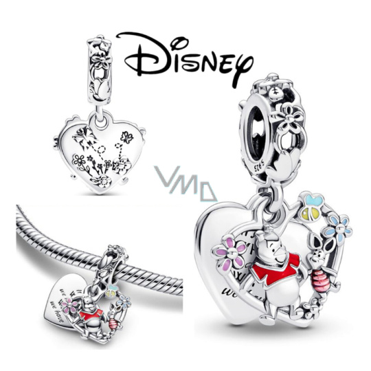Charm Sterlingové stříbro 925 Disney Medvídek Pú a Prasátko - Není to o tom co máme, ale koho máme, 2v1 přívěsek srdce na náramek, film