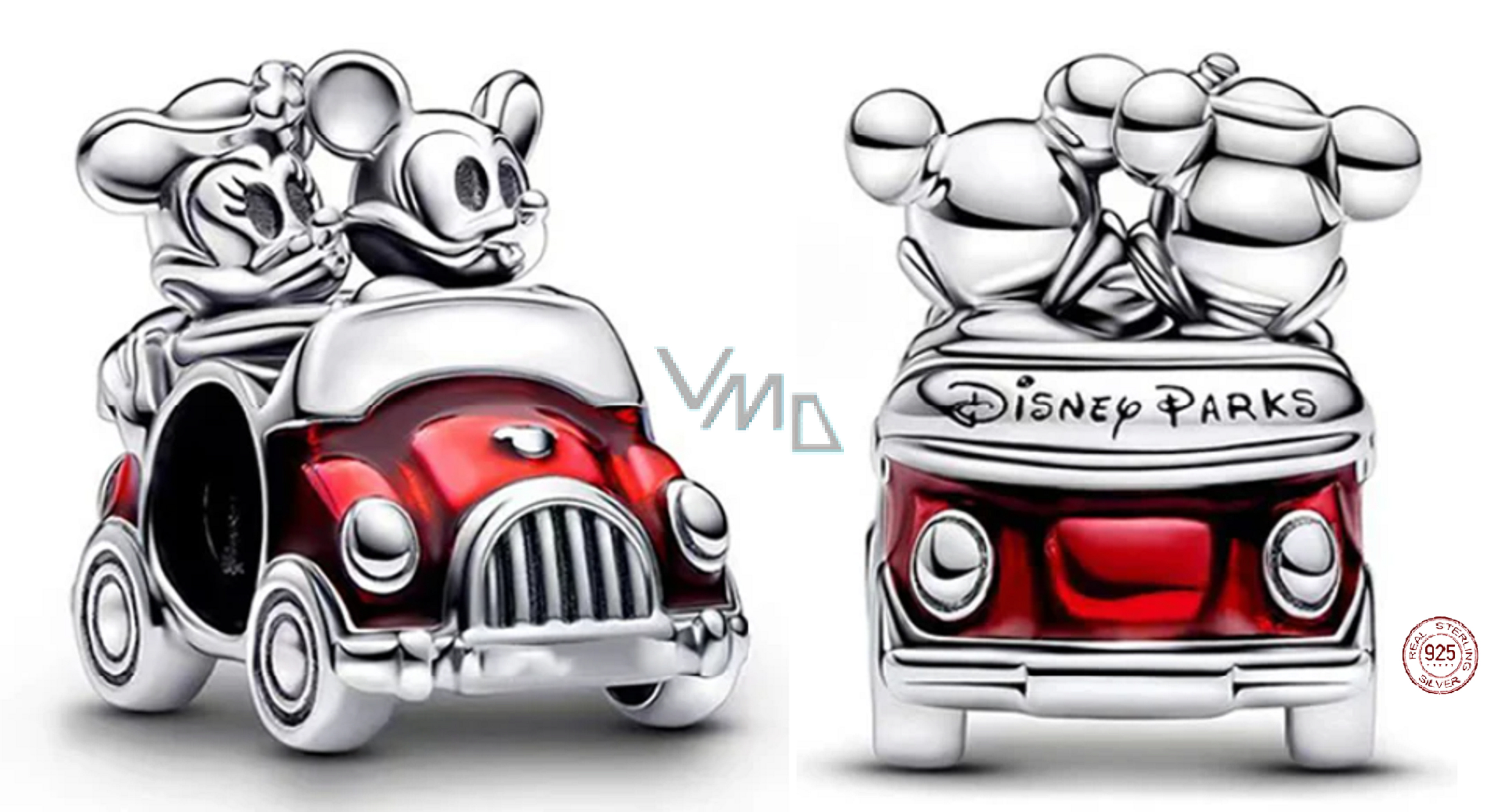 Charm Sterlingové stříbro 925 Disney Mickey & Minnie ma výletě, korálek na náramek cestování