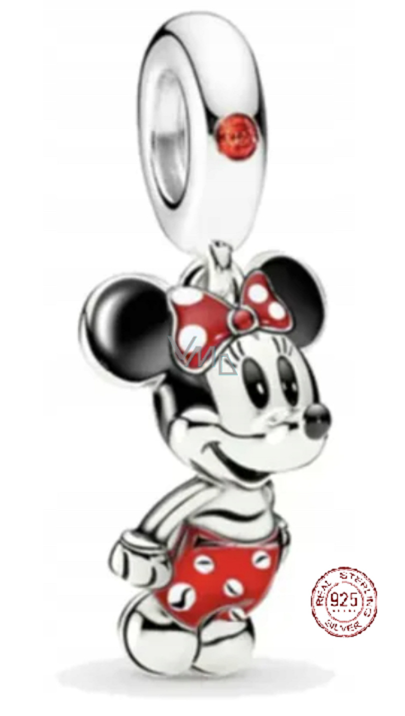 Minnie Mouse nebo zkráceně pouze Minnie je původně animovaná postava ze světa Mickeyho Mouse, jejímž autorem je Walt Disney. Každý ví, že za úspěchem myšáka Mickeyho stojí právě jeho kamarádka Minnie. Tento povedený přívěsek je vyroben ze sterlingového stříbra a doplněn červeným smaltem s bílými puntíky na mašli a sukýnce a černým smaltem na uších myšky. Darujte tuto roztomilou myšku svým blízkým nebo si ji sami doplňte do vaší sbírky přívěsků.