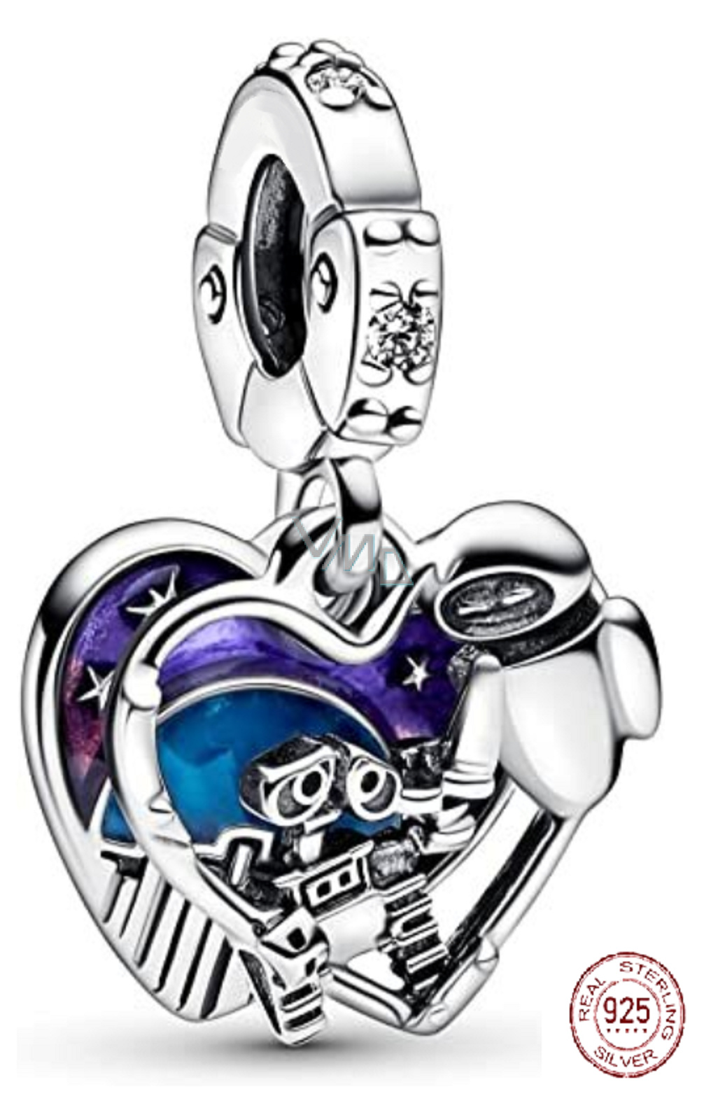 Charm Sterlingové stříbro 925 Disney Pixar Wall-E & Eve 2v1, přívěsek na náramek film