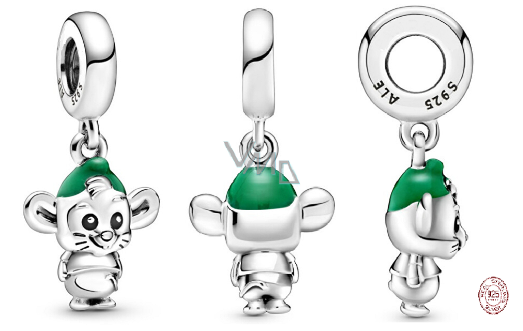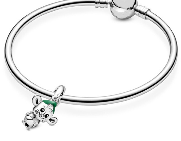 Ručně vyrobený přívěsek ze sterlingového stříbra je šperk inspirován jednou ze dvou myší, Gusem, se kterými se Disney Popelka spřátelí. Myška, která visí na háčku, má oči namalované ručně naneseným černým smaltem, krátkou košili, vyřezávané vousky, ocas, velké uši a vlasy vycházející z klobouku zdobeného ručně nanášeným zeleným smaltem. Spárujte toto kouzlo s dalšími šperky, které máte rádi, inspirovanými postavičkami od Disneyho a vyprávějte o svém dobrodružství.
