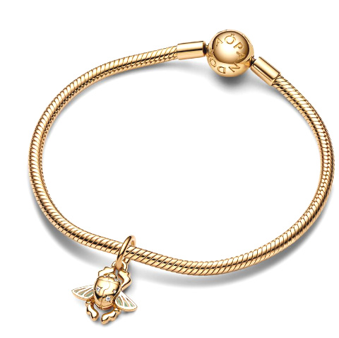Přívěsek Skarabeus je s jemně zlaceným 14karátovým zlatem a je inspirován zlatým skarabeem, známým z pohádky o Aladinovi a kouzelné lampě. Je klíčem k jeskyni pokladů s jejími nebezpečnými skvosty, kde se Aladin setkává s kobercem a nachází kouzelnou lampu. Visací přívěsek osázený Syntetickými kubickými Zirkony s kulatým briliantovým výbrusem je zakončen křídly smaltovanými technikou plique-à-jour, jež svými reálnými pohyby nahoru a dolů vytvářejí okouzlující efekt.