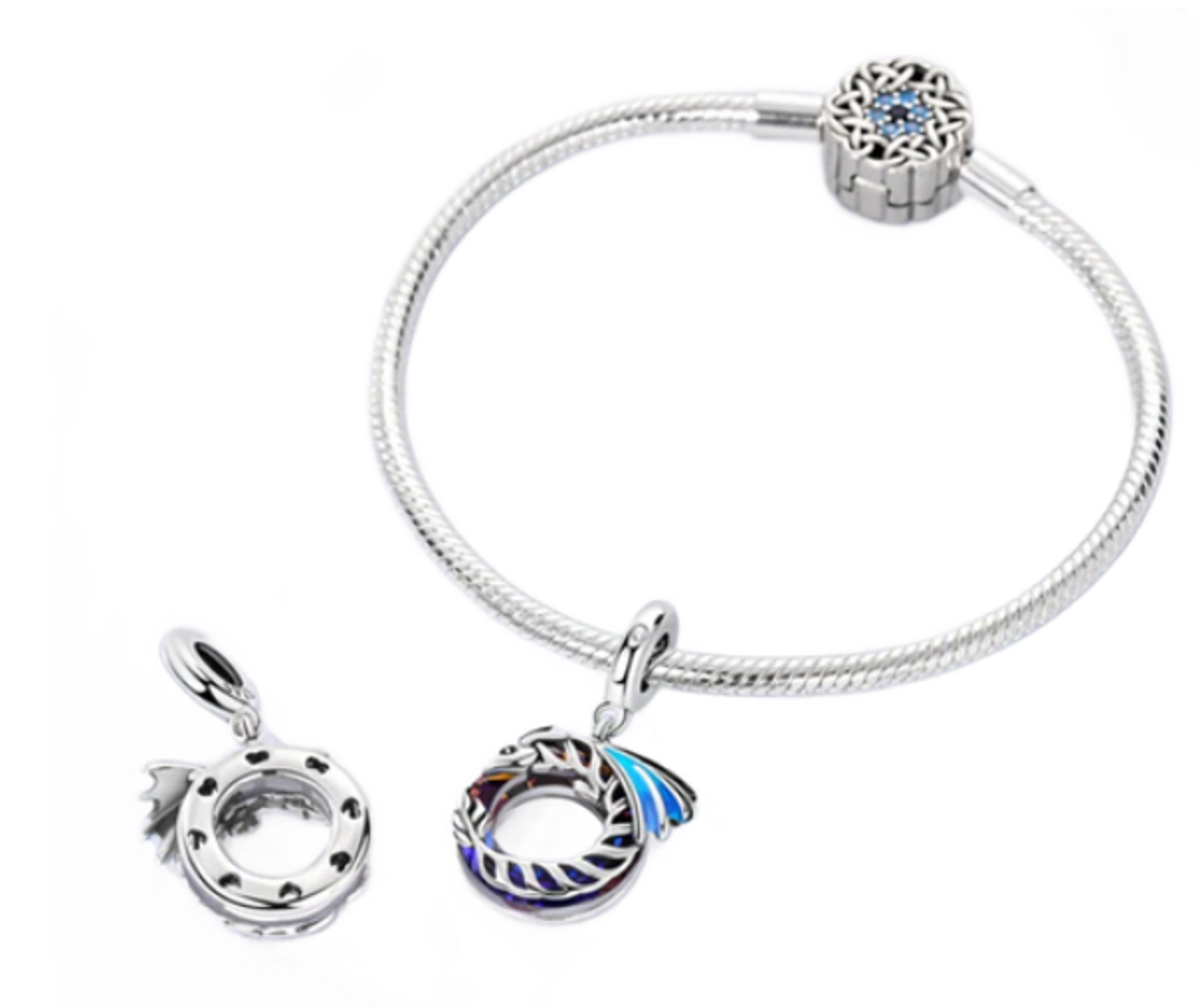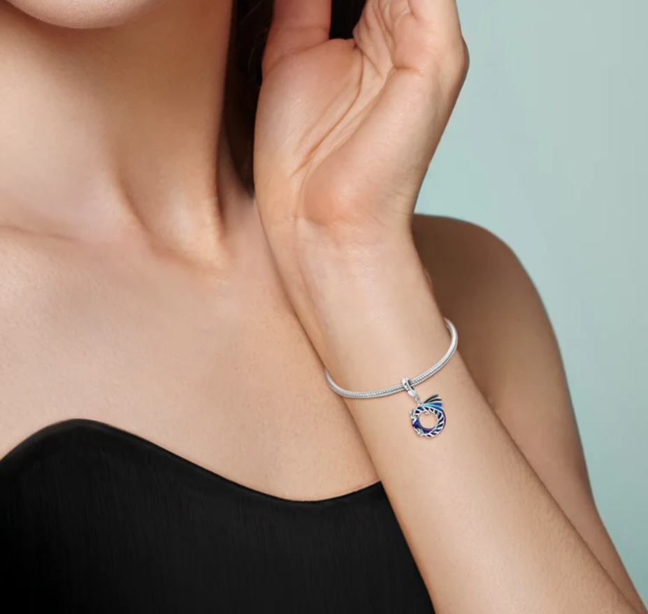 Objevte sílu a mystiku s unikátním stříbrným korálkem Drak, který je symbolem moudrosti, síly a ochrany. Tento detailně propracovaný šperk je vyroben z kvalitního sterlingového stříbra 925, doplněný o krásné modré prvky, které dodávají korálku magický nádech. Perfektní doplněk pro váš náramek nebo řetízek, ať už hledáte talisman pro štěstí, nebo originální designový kousek. Ideální dárek pro milovníky fantasy, mytologie a jedinečných šperků. Nechte se unést do světa legend a přidejte ke svému šperku sílu modrého draka!