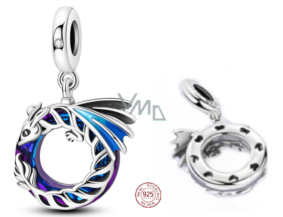 Charm Sterlingové stříbro 925 Drak modrý, korálek na náramek zvíře