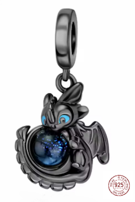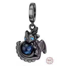 Tento okouzlující stříbrný přívěsek je inspirován drakem Bezzubka z animovaného filmu Jak vycvičit draka. Bezzubka je symbolem přátelství, odvahy a věrnosti, a patří mezi nejoblíbenější dračí postavy pohádkového světa. Tmavý dráček s výraznýma očima chrání třpytivou kouli připomínající noční oblohu plnou hvězd – symbol snů, magie a nekonečných možností. Šperk působí tajemně, ochranitelsky a zároveň velmi roztomile.