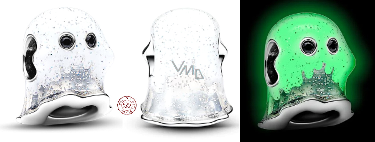 Charm Sterlingové stříbro 925 Duch Boo, zářící ve tmě, luminozní korálek na náramek, Halloween