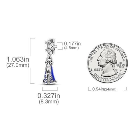 Charm Sterlingové stříbro 925 Duchovní symbol, a Nossa Senhora Aparacida, přívěsek na náramek
