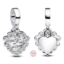 Charm Sterlingové stříbro 925 Dvojitý visací přívěsek s třpytivým srdcem, přívěsek na náramek láska