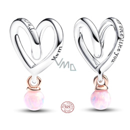 Charm Sterlingové stříbro 925 Dvoubarevné zabalené srdce pro maminku, přívěsek na náramek rodina