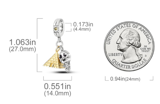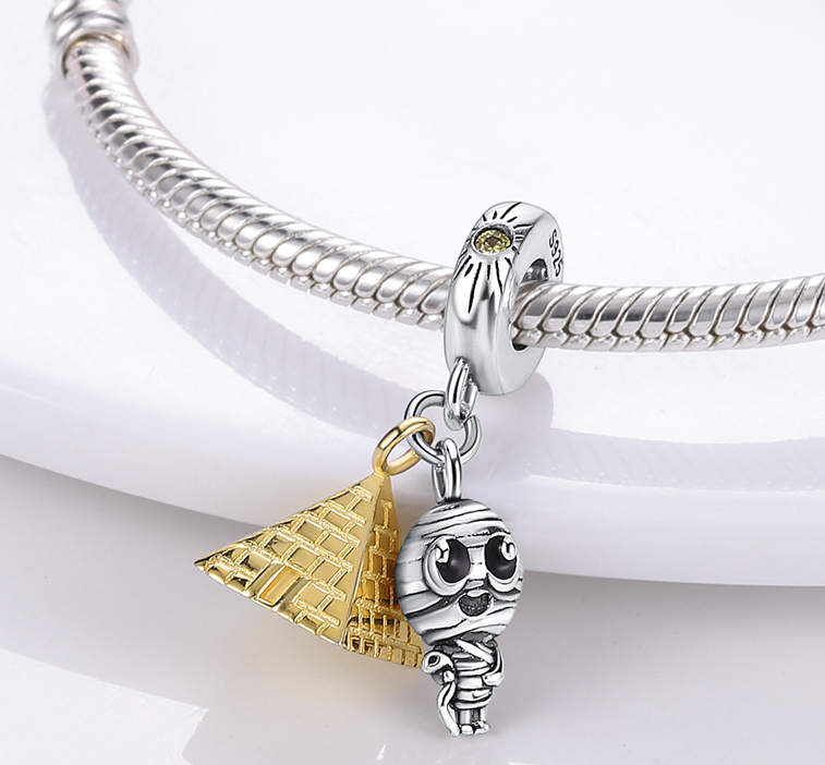 Charm Sterlingové stříbro 925 Egypt - Pyramida, Mumie, 2v1 přívěsek na náramek cestování