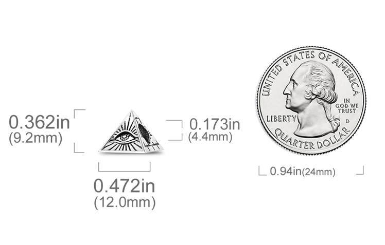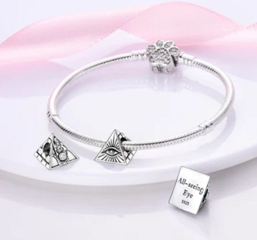 Charm Sterlingové stříbro 925 Egypt - Vševidoucí oko pyramidy, korálek na náramek cestování