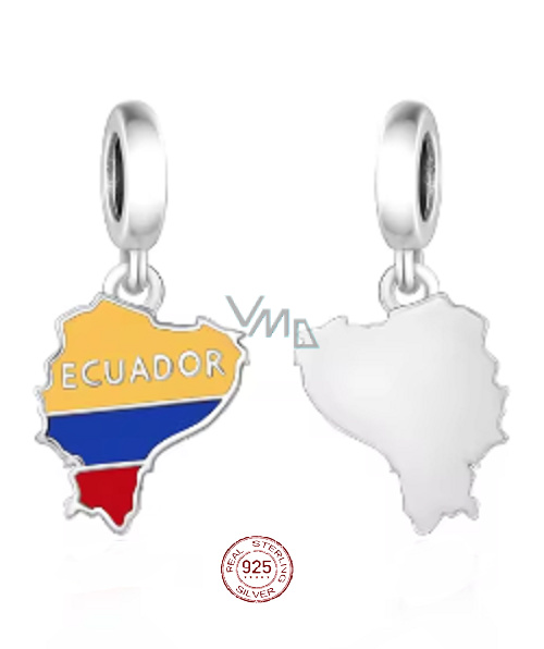 Charm Sterlingové stříbro 925 Ekvádor vlajka - houpající se mapa, přívěsek na náramek cestování