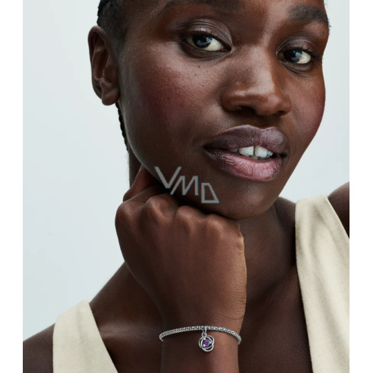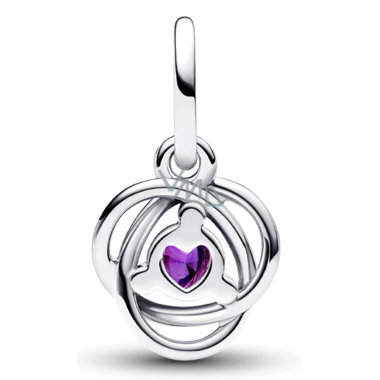 Charm Sterlingové stříbro 925 Fialový kruh věčnosti únor, přívěsek na náramek symbol