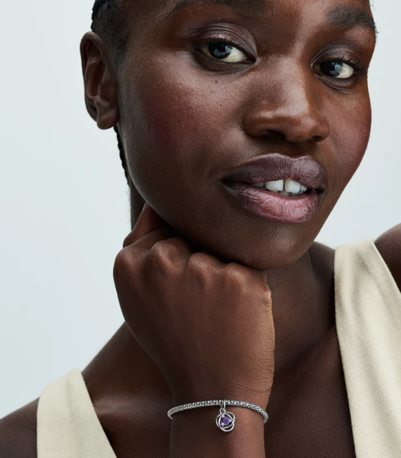 Charm Sterlingové stříbro 925 Fialový kruh věčnosti únor, přívěsek na náramek symbol
