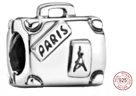 Charm Sterlingové stříbro 925 Francie, Paris - cestovatelský kufr, korálek na náramek cestování