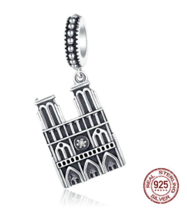 Přemýšlíte, co si přivezete z výletu z Paříže? Kupte si tento stříbrný přívěsek na náramek s motivem katedrály Notre Dame a vzpomeňte si na tento výlet, kdykoliv se podíváte na svůj náramek.