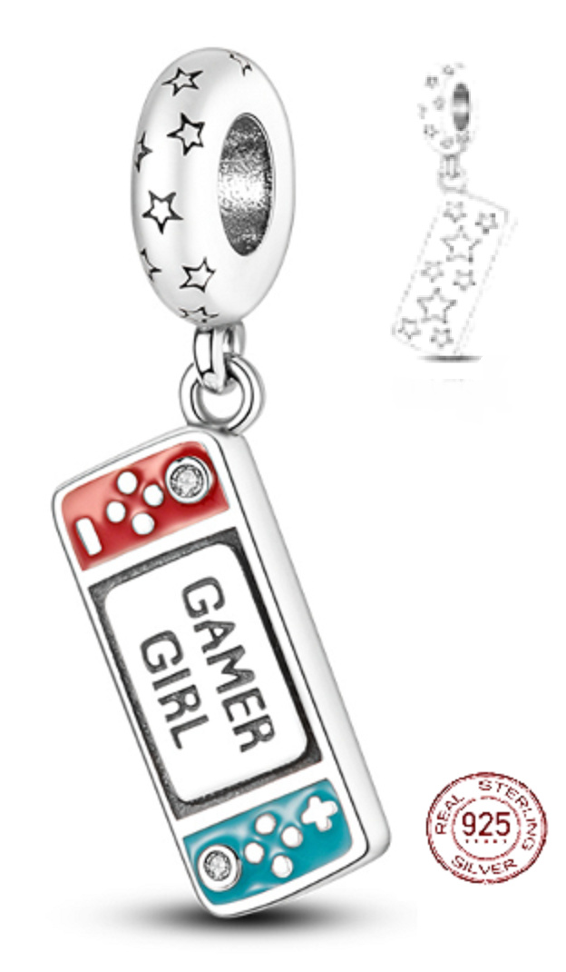 Charm Sterlingové stříbro 925 Gamer Girl - hráčský dívčí přívěsek na náramek, hra