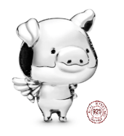 Charm Sterlingové stříbro 925 Goofy létající prase, korálek na náramek zvíře