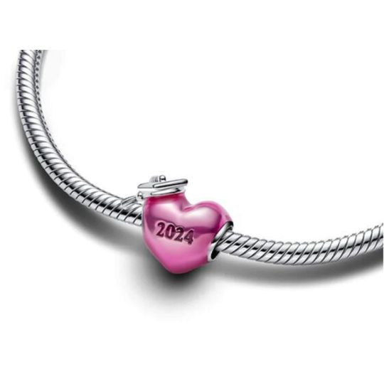 Charm Sterlingové stříbro 925 Graduation 2024 - Růžové promoční srdce, korálek na náramek gradace