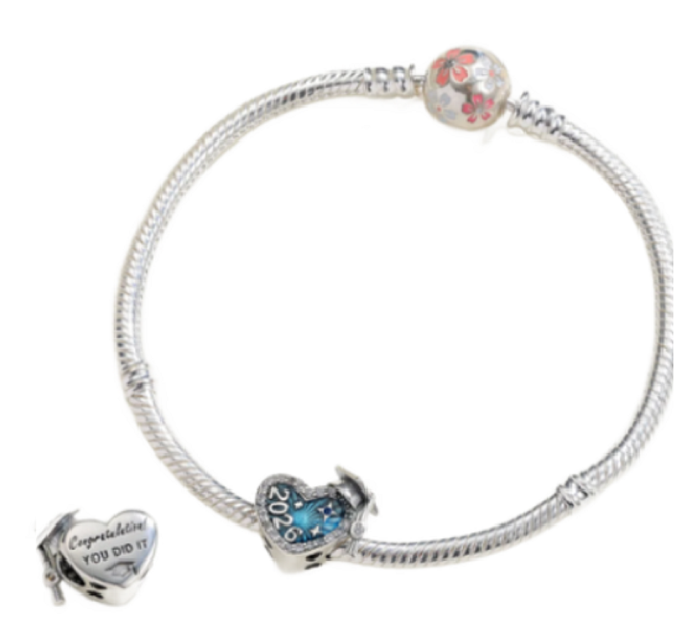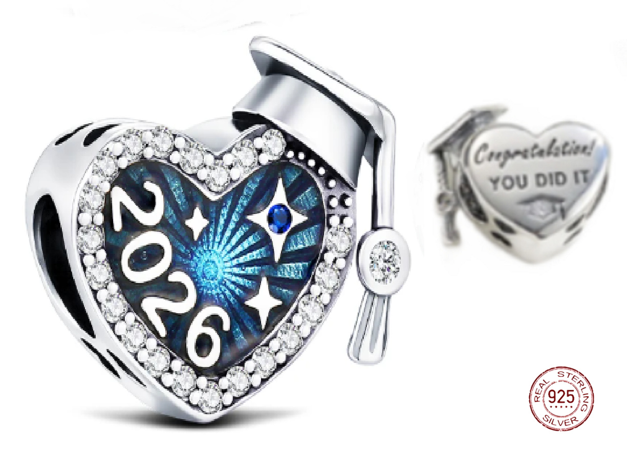Charm Sterlingové stříbro 925 Graduation 2026 – srdce plné hrdosti a nových začátků, korálek na náramek gradace