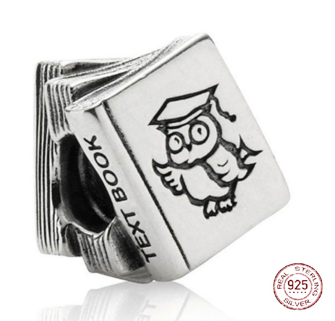 Charm Sterlingové stříbro 925 Graduation - Maturita Text Book, Absolvent korálek na náramek, gradace