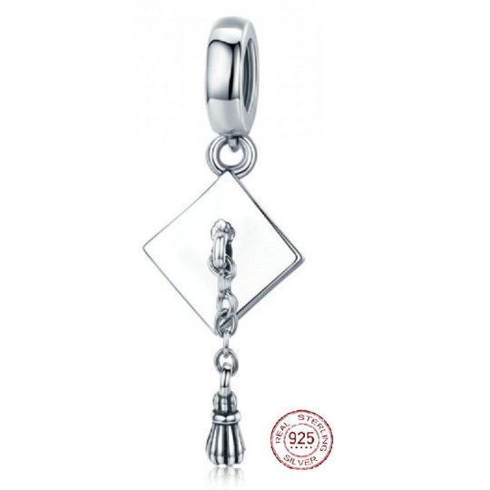 Charm Sterlingové stříbro 925 Graduation - maturitní čepice - rovný, Absolvent přívěsek na náramek, gradace