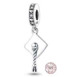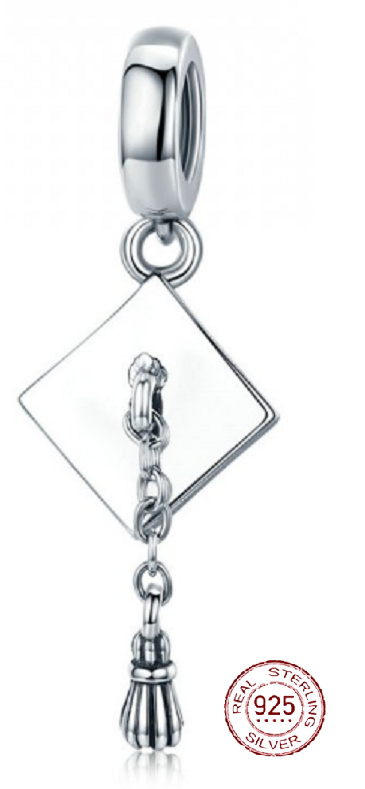 Charm Sterlingové stříbro 925 Graduation - maturitní čepice - rovný, Absolvent přívěsek na náramek, gradace
