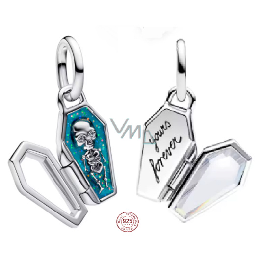 Charm Sterlingové stříbro 925 Halloween – tajemná rakev s kostrou, svítí ve tmě, přívěsek na náramek Halloween