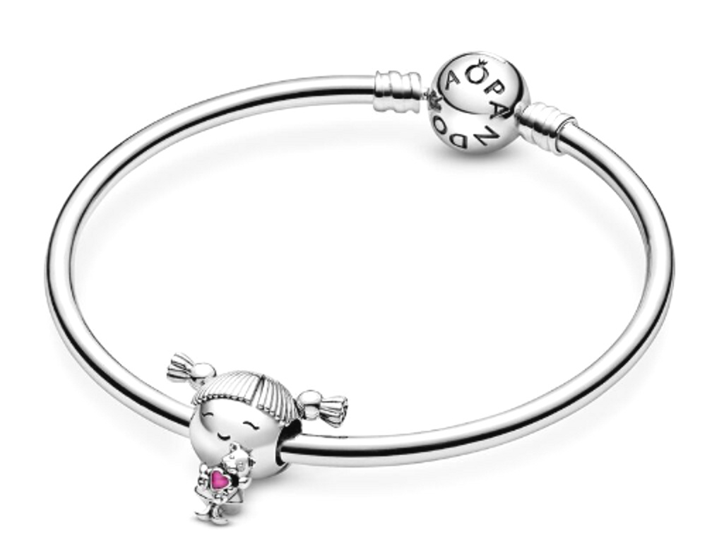 S tímto kouzlem budete vždy nosit svou malou sestru, neteř nebo sestřenici s sebou. Holčička má roztomilé pohyblivé copánky a sladký úsměv a v náručí drží plyšového medvídka, který zase drží srdce natřené růžovým lakem na nehty. Noste tento kousek s dalšími kouzly inspirovanými rodinou na svém oblíbeném náramku, náramku nebo náhrdelníku jako přívěsek.