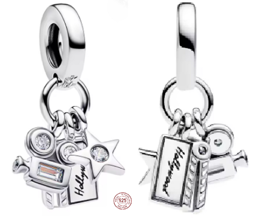 Charm Sterlingové stříbro 925 Hollywood Kamera a Hvězda, pro milovníky filmu, přívěsek na náramek film