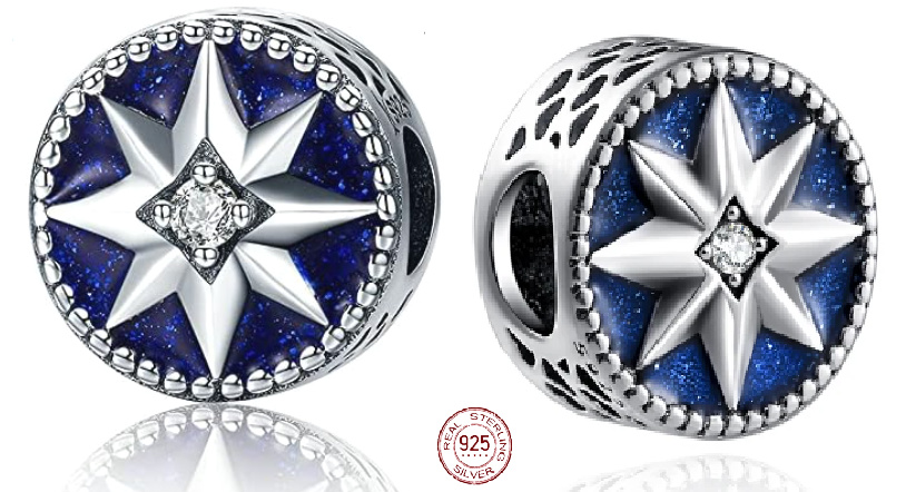 Charm Sterlingové stříbro 925 Hvězda na modré obloze, korálek na náramek vesmír