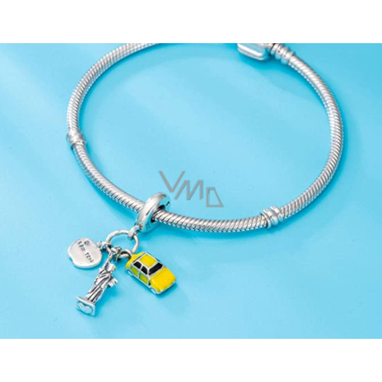 Přemýšlíte, co si přivezete z výletu z New Yorku? Kupte si tento stříbrný přívěsek na náramek s motivem Sochy Svobody a žlutého taxi a vzpomeňte si na tento výlet, kdykoliv se podíváte na svůj náramek.
